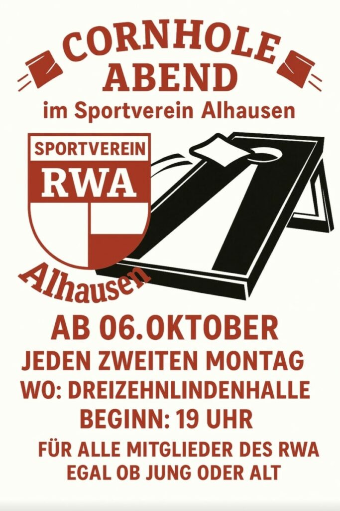 Ab dem 06. Oktober laden wir alle Mitglieder herzlich zu unserem regelmĂ€Ăigen Cornhole-Abend ein! Ob jung oder alt, AnfĂ€nger oder Profi â bei uns steht der SpaĂ im Vordergrund.