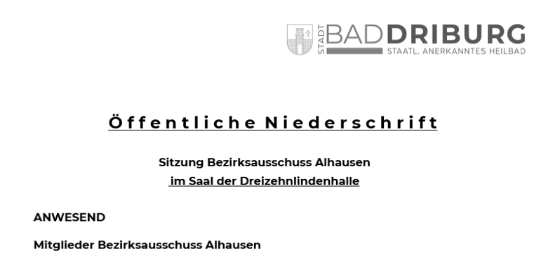 Das Protokoll der letzten öffentlichen Sitzung des Bezirksausschusses Alhausen ist nun verfügbar.