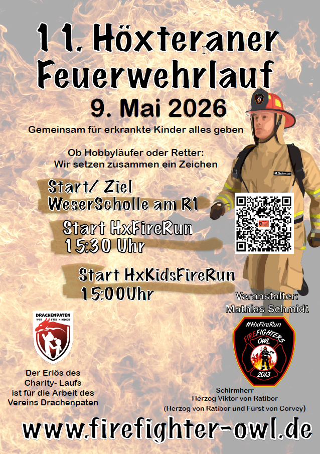 Der 11. Höxteraner Feuerwehrlauf findet am 09. Mai 2026 an der Weserscholle am Radweg R1 statt. Unter dem Motto „Gemeinsam für erkrankte Kinder alles geben“ sind sowohl Hobbyläufer als auch Einsatzkräfte eingeladen, gemeinsam ein Zeichen zu setzen und sich für den guten Zweck zu engagieren.