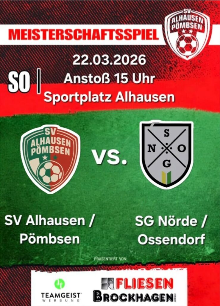 Meisterschaftsspiel in Sportverein Datum 22. März 2026 Zeit 15:00 Sportplatz Dreizehnlindenweg 9 33014 Bad Driburg- Alhausen Sonntag, 22.03.2026, 15:00 Uhr Sportplatz Alhausen Weitere Informationen: 🔗Spielplan